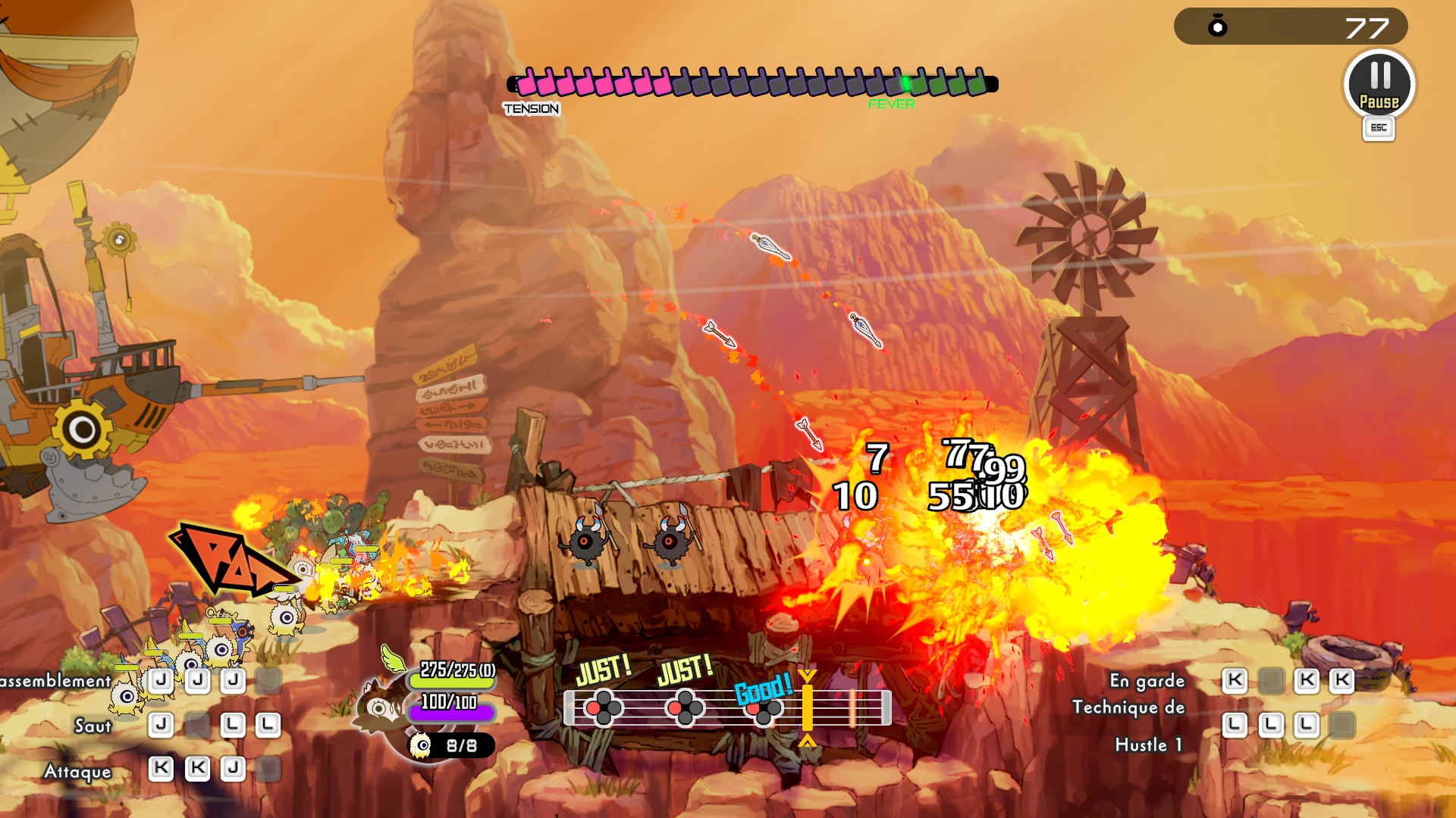 Et bien entendu, le cœur de jeu reste le même : on appuie sur les boutons en rythme pour que l'armée se mette en branle, ordres qui d'ailleurs se retrouvaient chez les ancêtres. Et tout rythme parfait augmente une jauge qui mène au mode fièvre. Les miracles ne sont pas encore de la partie, mais les "Super Fever Skills" annoncés pour fin octobre semblent correspondre.