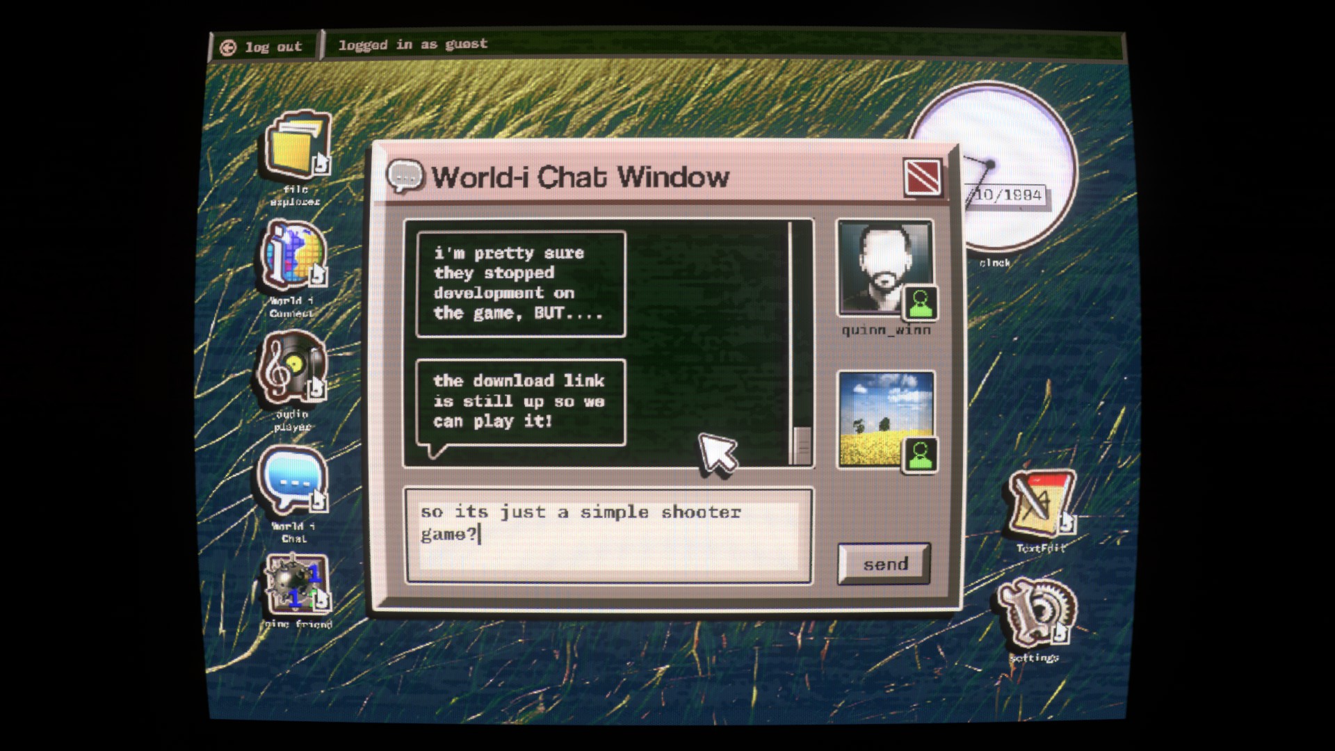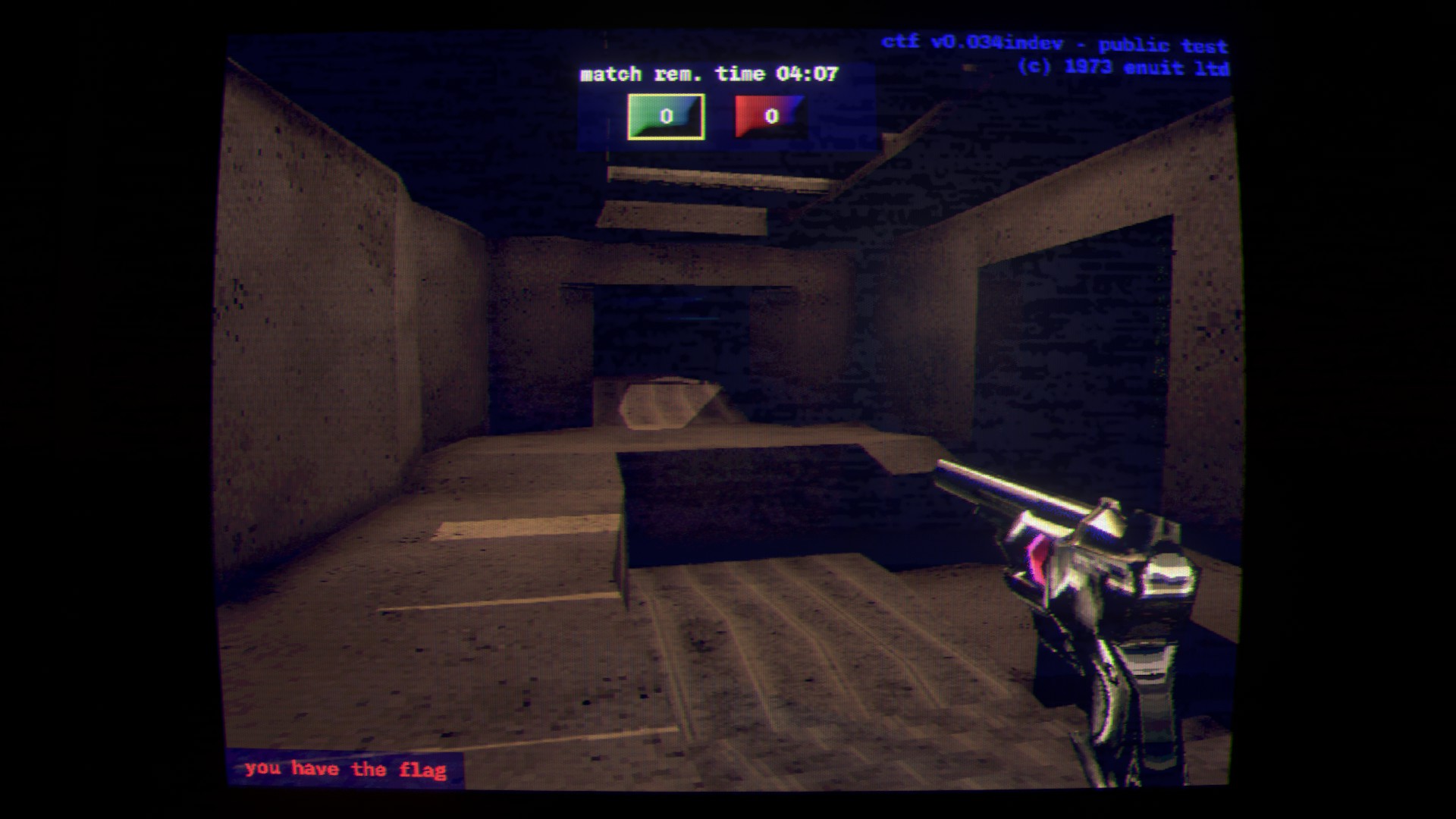 Vous vous connectez sur un vieux PC qui ne semble pas avoir été touché depuis le début des années 90. Alors que vous explorez les fichiers, quelqu'un vous contacte pour vous proposer de jouer à la béta d'un FPS, un jeu de capture de drapeau. S'en suit un mélange d'exploration du système et d'étranges manifestations graphiques.