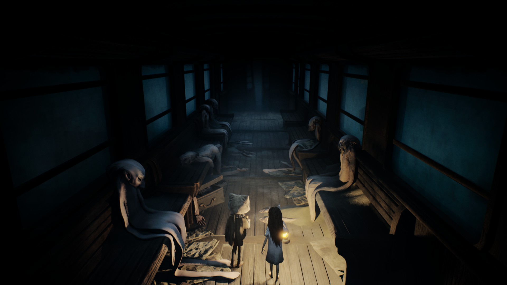 Et on est vraiment ici en terrain connu : des enfants masqués qui progressent dans des environnements inquiétants où rodent des adultes monstrueux et absurdement grands, le style graphique, le travail sur le son.. Tout rappelle les mésaventures de Six.