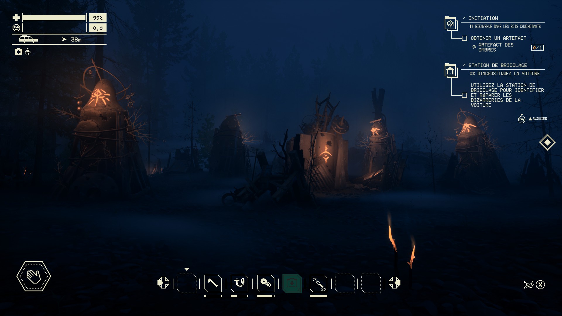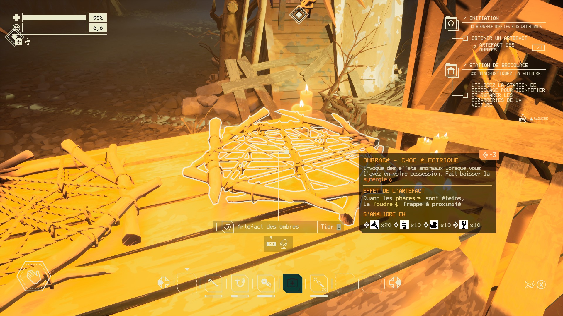 Et soudain, alors que le soleil éclaire timidement les lieux, à quelques pas d'une tour de l'ARDA que je m'apprête à visiter, je le vois : un amoncellement de bois et de métal, une sorte de grand totem entouré de bougies. Un scan et hop, les choses s'enchainent et on obtient enfin un artefact qui donne accès à un tout autre réseau de routes. Les choses sérieuses peuvent enfin commencer !