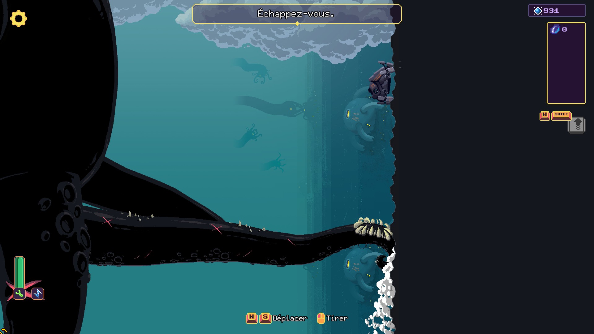 Vu qu'il est également important de ramener certains minéraux pour pouvoir acheter des évolutions permanentes, il faut constamment choisir entre conserver une partie de la récolte ou l'investir dans les améliorations temporaires. Tout dépend de vos objectifs, en fait : vite retrouver ce mineur perdu dans l'obscurité ou tenir jusqu'à confronter le leviathan ?