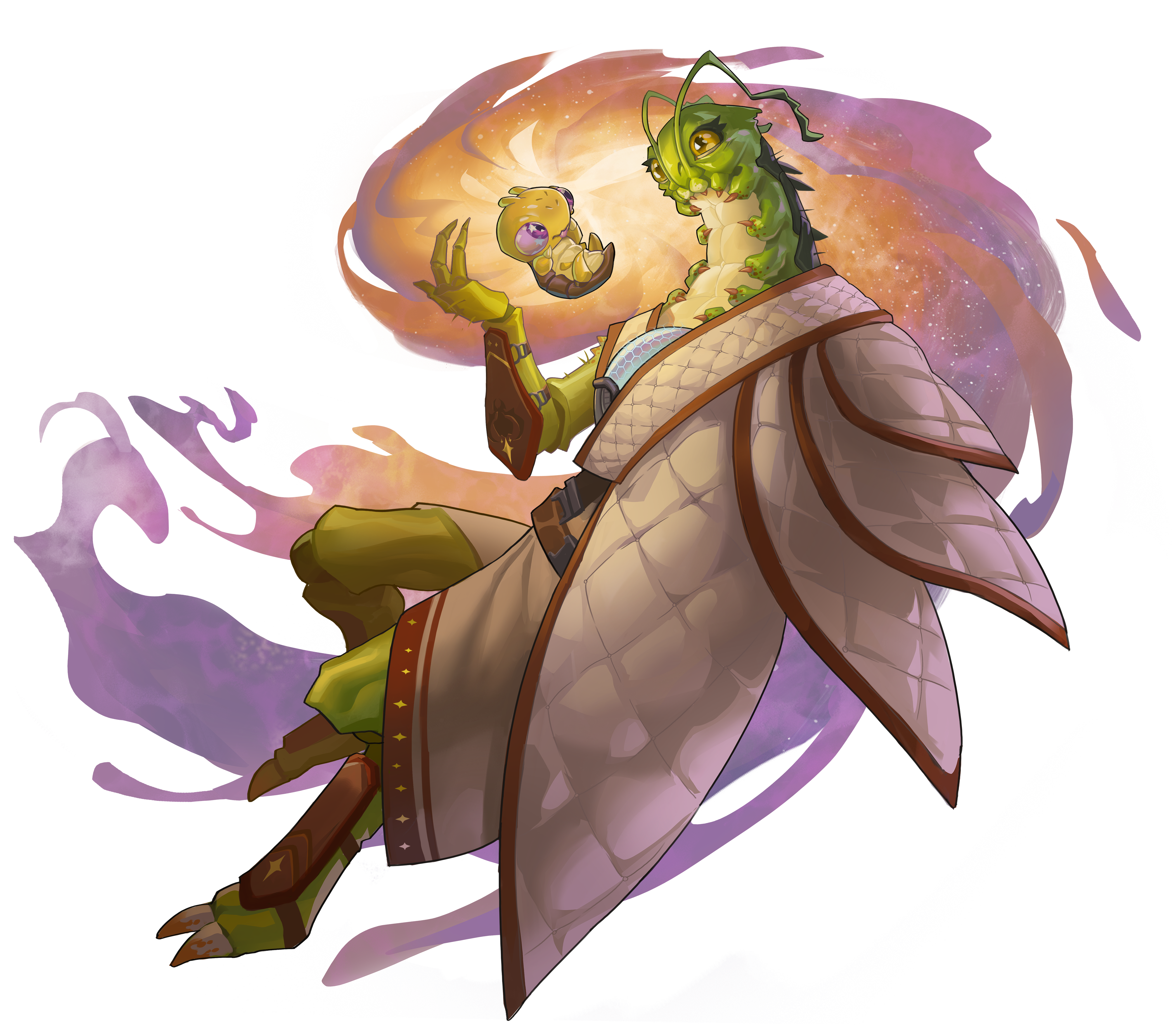 Preach, personnage de classe Mystique, appartient à l’espèce des Shirrens, insectoïdes inspirés de l’univers du jeu de rôle papier Starfinder.