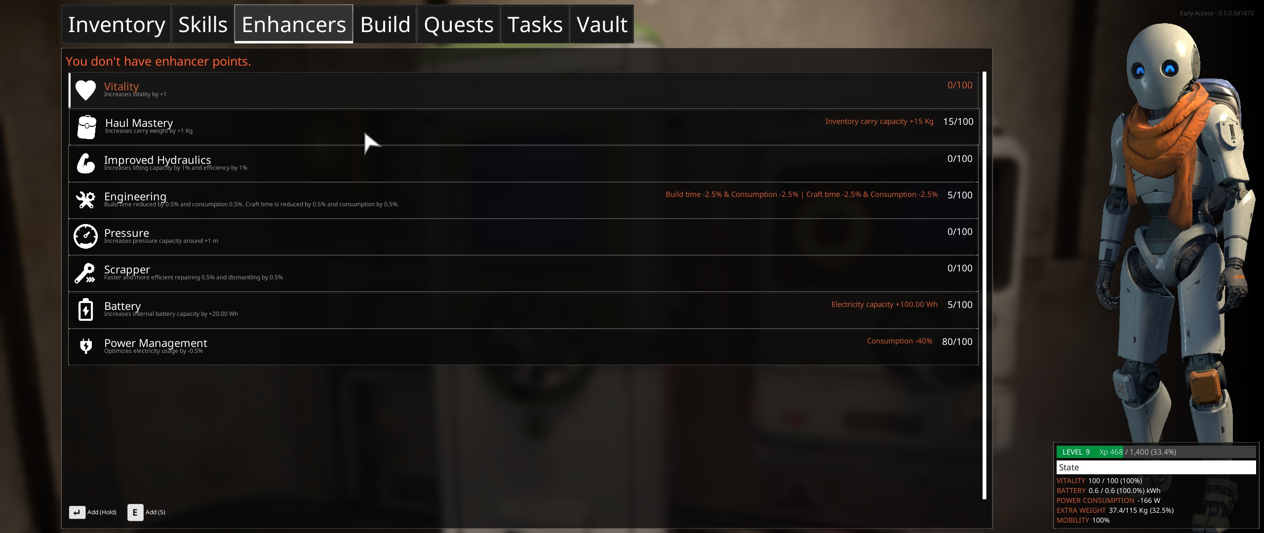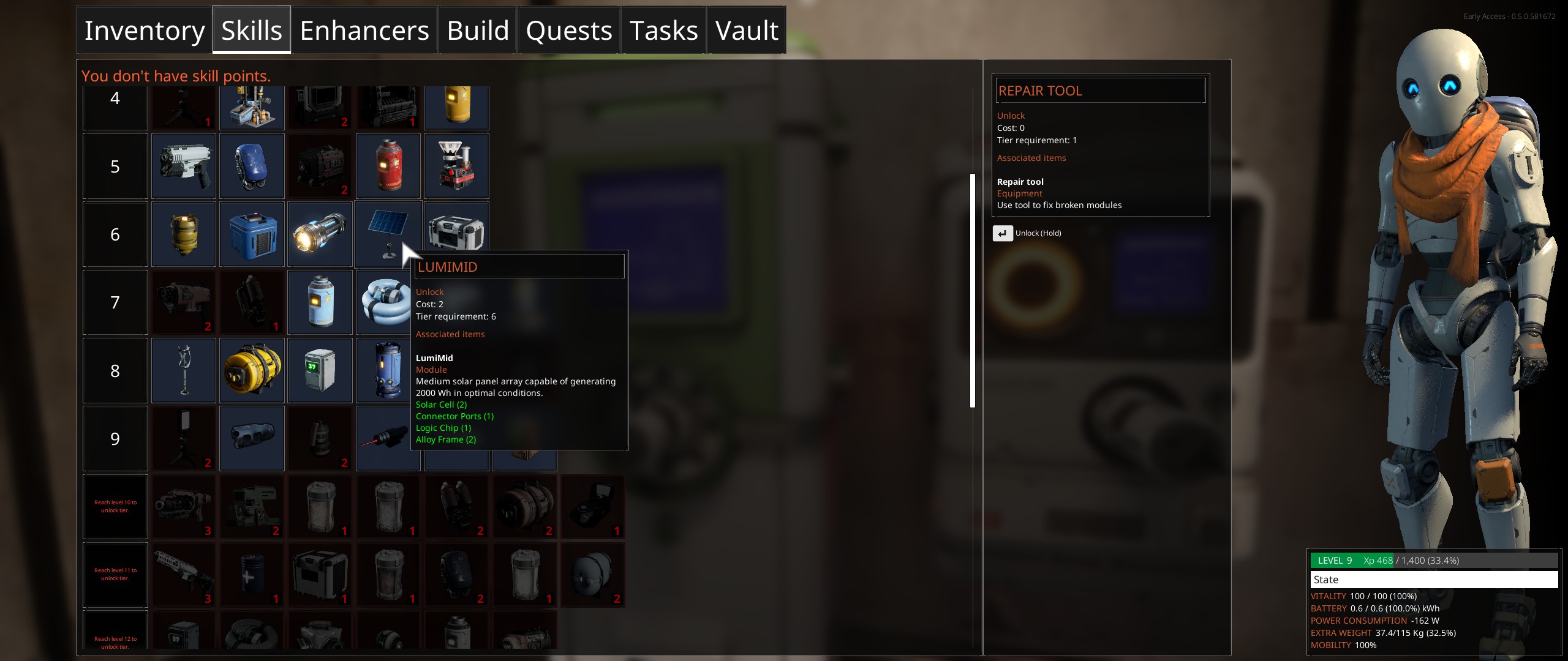 Il est dommage d'avoir une progression d'un robot par un système d'expérience alors qu'on pourrait imaginer récupérer les plans pour nos constructions sur les terminals qu'on peut croiser au cours de notre aventure et remplacer des pièces de notre corps pour renforcer ses capacités.