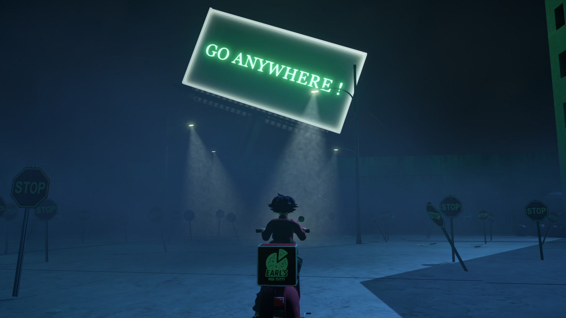 Du coup, comme le gameplay est assez simpliste, on attend le jeu sur la narration et l’histoire. C’est l’autre point sur lequel A Pizza Delivery coince un peu. La thématique sous-jacente des histoires des personnages que l’on rencontre est intéressante, mais elle est souvent plombée par une narration qui tombe à plat tant les échanges sonnent creux. La fin du jeu, quant à elle, survient tellement brusquement qu’on se demande si on n’a pas raté quelque chose, sans véritable accomplissement dans l'histoire de B. Une heure et demi de jeu et une conclusion qui vous arrache un « C’est tout ? » n’est jamais bon signe.