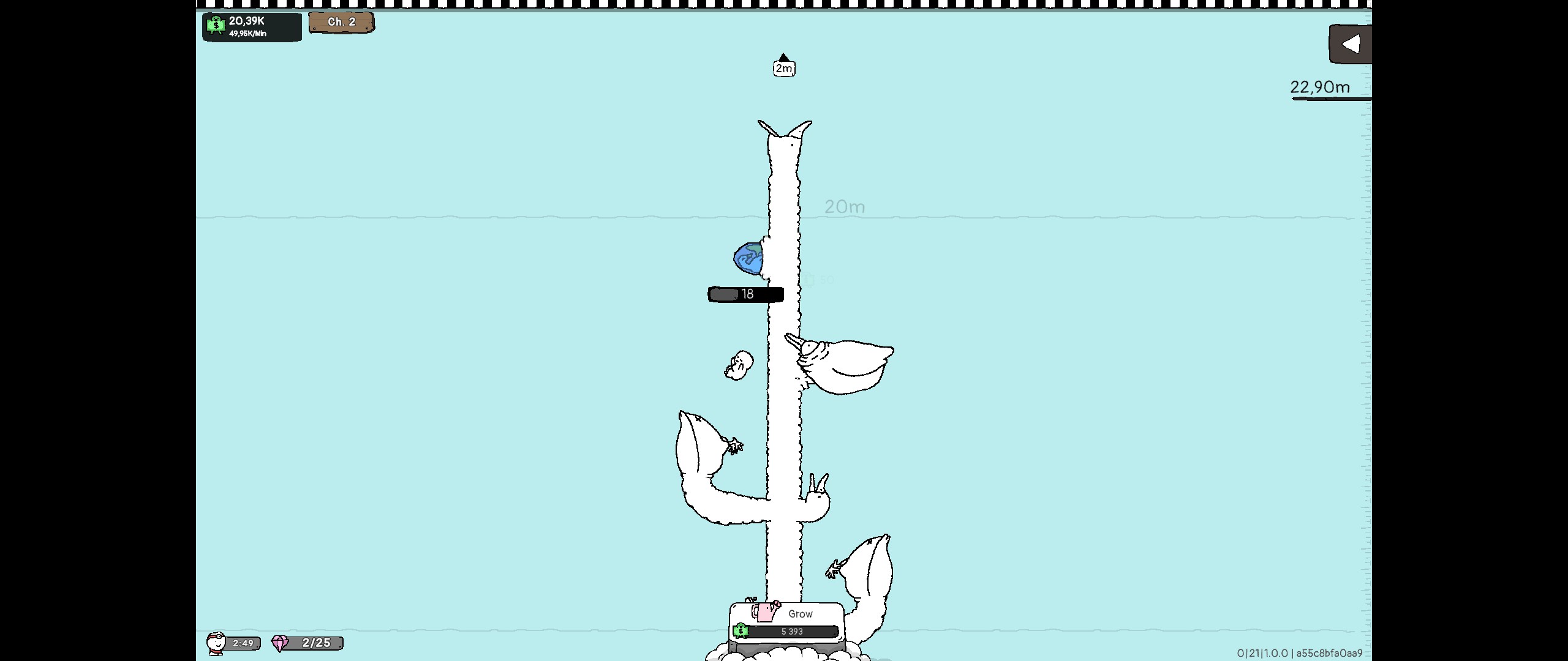 En poussant, de temps en temps une excroissance pousse le long du coup. Ces excroissances sont assez variées et sont déplaçables librement permettant de jouer avec la chute des bébés pour maximiser les gains. Notons que si trois bébés de niveau similaire se rencontrent en chemin, ils fusionnent pour passer au niveau supérieur rapportant plus d'argent.
