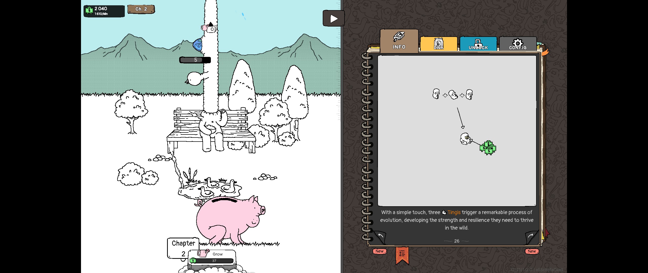 Master Tingus est un animateur qui fait des... animations... étranges... et s'était associé avec le développeur SweatyChair pour faire un idle game centré autour... d'oies ? C'est la créature du titre, mais ce n'est pas la seule créature présente et surtout ces créatures sont rarement présentes dans la forme à laquelle on est habitué. Sorti initialement sur smartphone en 2023, avec un modèle économique basé sur les microtransactions, le titre sort désormais sur PC avec une évolution du modèle économique plus en adéquations avec les attentes de cette communauté de joueurs, ie sans microtransaction.