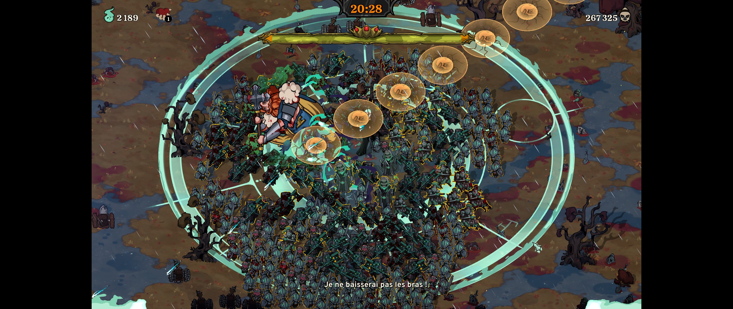 Finalement, niveau gameplay, je trouve qu'on est peut-être un peu trop passif (d'autant qu'il y a une option qui permet de ressusciter les morts automatiquement ET une relique qui permet la même chose... je n'ai pas compris l'intérêt pour le coup). Sur le principe, ce n'est pas étonnant dans la mesure où on est dans un "survivor". Mais j'aurais bien aimé pouvoir utiliser la souris pour indiquer une direction de ciblage pour les créatures et/ou les attaques magiques. Le jeu parait actuellement un peu trop aléatoire, avec des créatures qui sont parfois très agressives et d'autres non, des créatures qui ne se repositionnent pas pour renforcer le côté en combat, des pouvoirs qui attaquent l'ennemi le plus proche plutôt que le plus dangereux, etc.