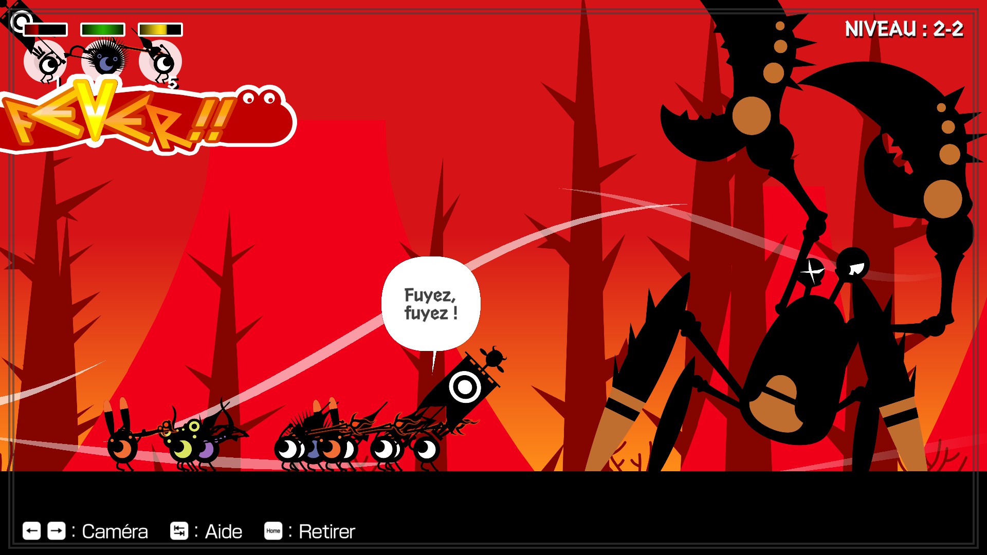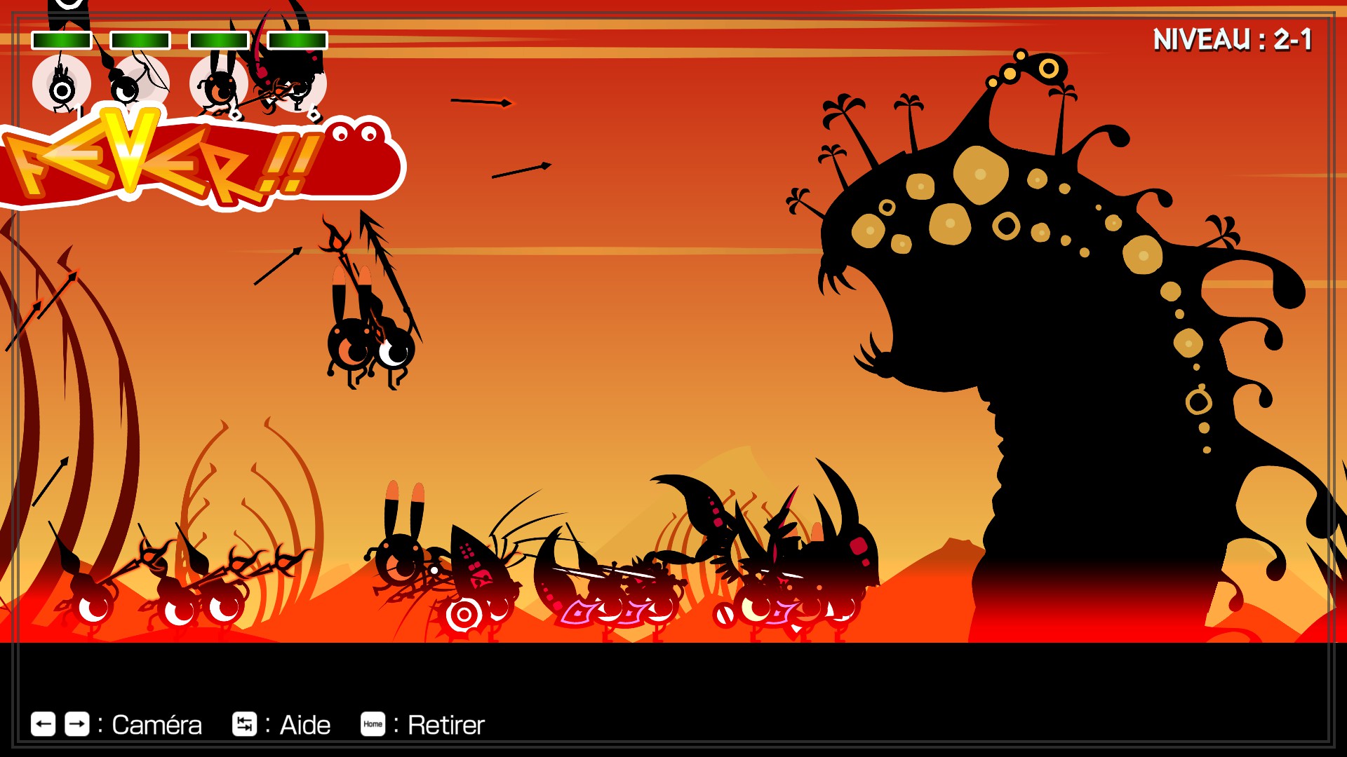 Si vous échouez sur un affrontement, le choix vous est proposé de recommencer à la dernière sauvegarde ou de tout reprendre depuis le début. N'ayez crainte, ces combats n'ont aucune incidence sur l'état de votre armée pour la campagne normale ; aucun risque de revenir à des Patapon de base suite à une cuisante défaite.