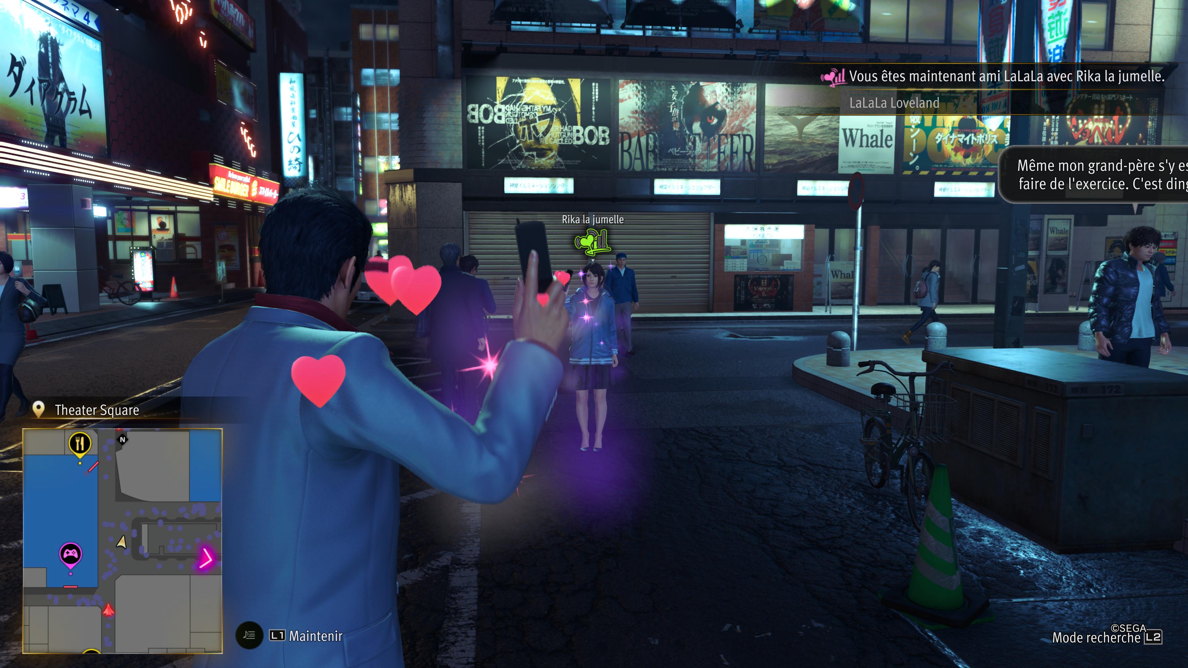 Pour en retourner aux changements, le studio a aussi pu apporter des changements mineurs à la carte d'Okinawa, corrigeant certains menus problèmes sur le cheminement du joueur, et fluidifier un peu les mouvements, mais on peut tout de même noter que le jeu n'est pas forcément splendide graphiquement avec un Dragon Engine qui continue à accuser son âge même s'il est mis à jour autant que faire se peut. On peut se distraire comme on peut avec la recherche d'amis via une sorte de liaison Bluetooth baptisée réseau Lalala, directement repris (pompé) des jeux avec le compère Ichiban.
