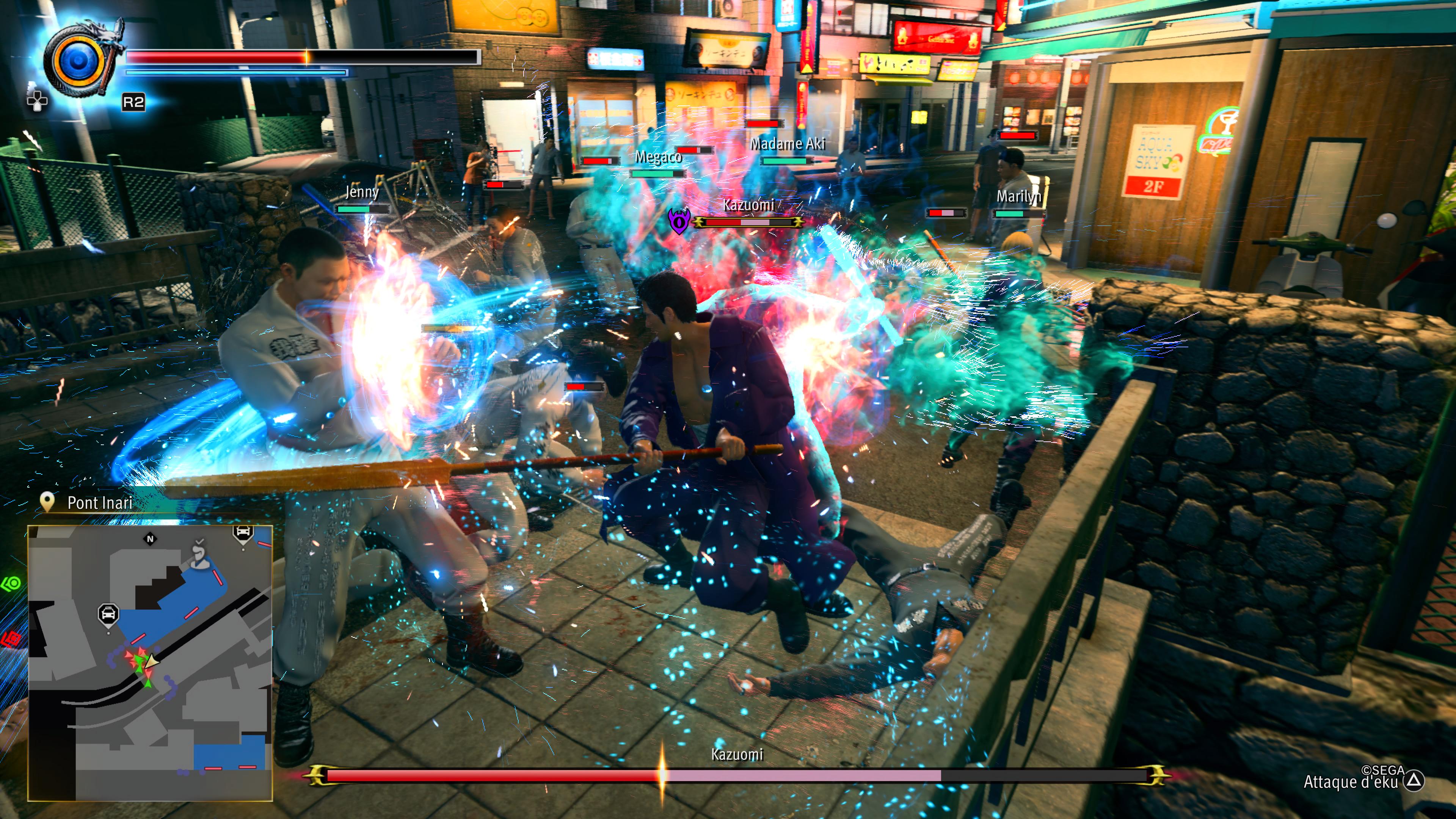 Dans les changements flagrants par rapport à l'original, une partie des personnages a droit à un lifting façon volte-face, certains changeant complètement de visage. Côté famille Ryudo, il n'y a guère que le pauvre Mikio qui a juste droit à un lissage, alors que le patriarche perd sa face un peu débonnaire à moustache d'Abraracourcix pour une version un peu plus sévère, ce qui n'est pas forcément un mal. Et surtout, Rikiya Shimabukuro change totalement de visage en gardant la même physionomie et les mêmes animations, d'où un léger décalage qu'on peut ressentir parfois quand il se déplace ou joue au caïd. Avec son visage plus jeune, difficile de dire qu'il est dans la vingtaine et on a presque l'impression qu'il est en train de sortir de l'adolescence. Clairement, si on a déjà joué à la version remaster, le face swap est complètement aberrant et on perd le décalage qui était créé justement par le look atypique de ce gangster des îles, tellement éloigné de tous ceux qu'on peut croiser à Kamurocho ; il a maintenant juste la tronche d'un de ces randoms qu'on tabasse au hasard d'une ruelle et on peut se demander pourquoi lui et pourquoi pas Mikio aussi en ce cas. Pourtant, le jeu d'acteur reste bon, certaines séquences émotions touchent un peu plus juste à mon sens et surtout ceux qui n'ont jamais touché au remaster ou à l'original ne verront aucun souci au personnage.Quant à parler redesign, difficile d'éviter l'éléphant dans la pièce avec le nouveau visage du vicieux Hamazaki, qui auparavant était une armoire à glace à la face burinée et arborant une cicatrice de brûlure. Cette fois, il a été remplacé par un vieux yakuza encore une fois assez classique et trop peu original dans son design, en se basant sur l'acteur Teruyuki Kagawa... Qui a été accusé d'agressions sexuelles dans des bars à hôtesses et avait fini par s'excuser auprès d'une des deux victimes (mais pas l'autre). Malgré l'opposition des fans historiques de la licence au maintien de Kagawa dans ce rôle, en s'appuyant sur une précédente décision de Sega qui avait remplacé au dernier moment l'acteur Pierre Taki dans Judgment du même studio suite à un scandale lié à la drogue en 2019. Force est d'admettre que le choix de Kagawa marche effectivement pour le côté vicieux du personnage, de l'aveu même du réalisateur du jeu Ryosuke Horii dans GAME Watch (traduite par IGN) :