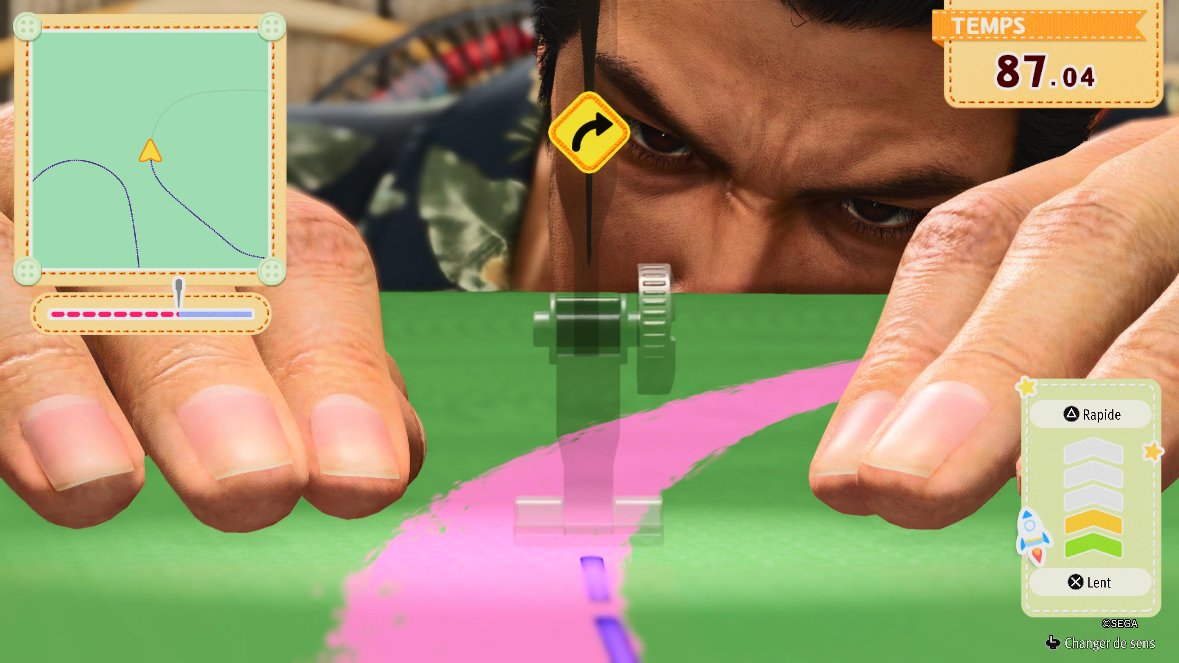 Qui dit Kiwami dit refonte de gameplay autant que de graphismes et là le studio RGG est allé très loin, très très loin. Ils ont pris la trame de l'histoire principale du jeu et ont changé... Presque tout le reste à vrai dire. À commencer par la gestion de l'Asagao et les approfondissements de liens avec les enfants dont il s'occupe avec Haruka ; un (nouveau) recyclage de mini-jeux à profusion sont intégrés dans des tranches de vie calmes et les habitués de la série retrouveront une nouvelle fois de la cuisine, de la pêche, des plantations à gérer et des animaux à nourrir pour obtenir œufs et lait, ainsi qu'une variante du mini-jeu de QCM pour apprendre leurs leçons aux enfants. Kiryu mettra aussi à profit son habileté légendaire pour coudre vêtements, coussins et mouchoirs ou encore pour attraper des insectes. Toutes les productions "made in Asagao" pourront être revendues à des habitants de la ville en échange de monnaie sonnante et trébuchante ainsi que des items servant à faire de la cuisine... Mais tout ça, c'est surtout là pour coudre (hmmmm) des liens avec les enfants afin qu'ils s'ouvrent à lui, source d'histoires secondaires entre mignonnes et assez glauques (je vous laisse apprécier vous-mêmes si vous y jouez). Dans l'absolu je trouve cette refonte assez bien faite et tout ce temps passé à aider les gamins à construire une vie stable renforce en parallèle ce qu'on vit avec Kiryu dans Like a Dragon: Infinite Wealth. Cela apporte aussi, en parallèle au personnage, des moments de paix au joueur dans toutes ces emmerdes qui suivent décidément Kiryu comme son ombre. Je regretterai quand même que les mini-jeux de l'orphelinat soient pour la plupart déjà vus et revus dans d'autres jeux de la série, mais on connaît l'amour du recyclage du studio alors que reviennent encore et toujours mahjong, shogi et autres fléchettes et billard.