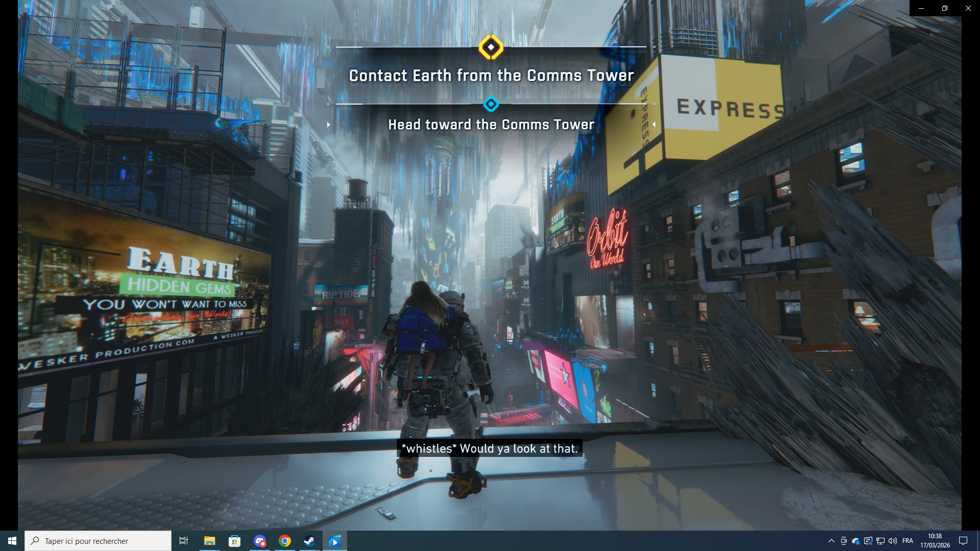 L'exploration était elle aussi assez agréable. La zone proposait des décors un peu variés et animés, entre les ruelles, les boutiques, les toits, plus les animations sur les bâtiments en hauteurs. On échappe donc un peu aux couloirs grisâtres des zones de travail de la station, cool. Le jeu propose au passage d'explorer un peu en dehors du chemin principal, avec différents bonus ou objets de collection à trouver. On ne parle pas de grands détours (en tout cas pas sur cette session), mais c'est assez sympathique.