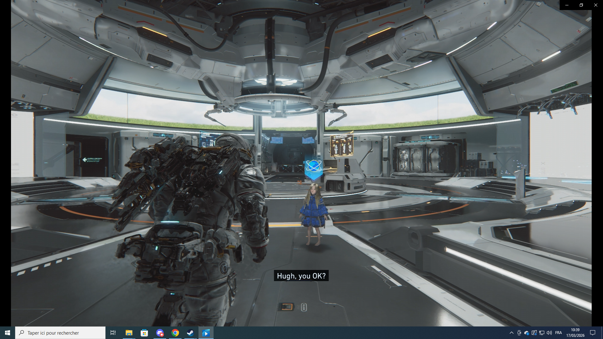On découvre rapidement "Le Refuge", un genre de Hub central où se trouvent diverses choses qui se débloquent à mesure de la progression dans le jeu. Pour commencer, il y a des consoles pour améliorer les divers équipements, objets, capacités. Un robot un peu rigolo, servant à gagner des bonus via un système de tickets et de cases à découvrir, est également présent. Il y a des des emplacements d'exposition des armes et armures. Ou encore une encyclopédie des ennemis. C'est aussi un lieu d'interactions avec Diana, à qui il est possible de donner divers objets trouvés en exploration (un globe terrestre ou un toboggan, par exemple), afin de lui faire découvrir les Humains de la Terre. Enfin, c'est de là où l'on part en missions, en sélectionnant un des points d'entrée d'une partie de la station. De nouveaux points se débloquent lorsqu'on les trouve et depuis eux il est possible de faire un retour au Refuge. On a ici un Hub assez classique du genre.